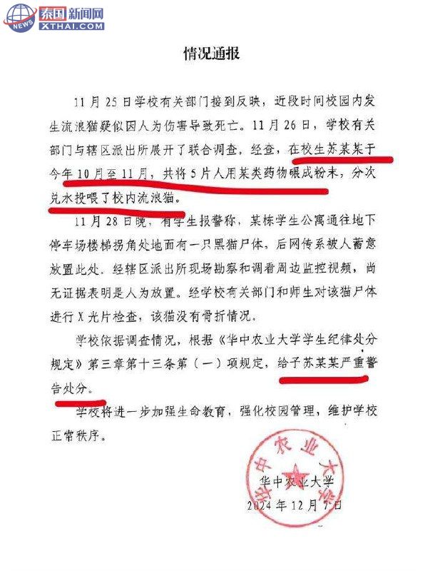 泰国新闻网XTHAI报道,一则令人震惊的消息近日在网络上掀起轩然大波:曾因虐猫事件引发公愤的华中农业大学学生苏某,竟然成功通过考试,即将“上岸”某事业单位,这一结果让许多爱猫人士及网友感到愤怒与不解。