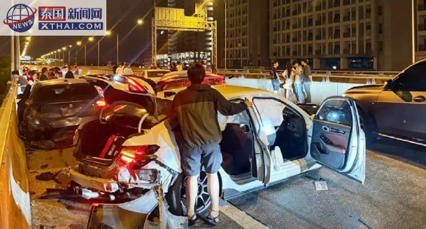 泰国新闻网XTHAI报道,高速公路上的“速度与激情”演变成了现实版的噩梦!今天凌晨,乌隆府通往Bang Pa-in方向的高速公路上,一场豪车追逐战酿成了混乱的大祸,十多辆车被撞得七零八落,现场惨不忍睹。