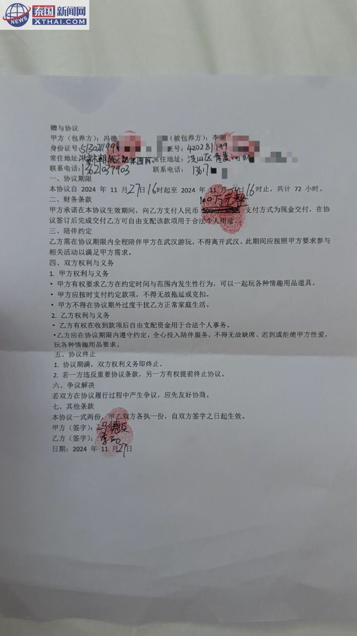 泰国新闻网XTHAI报道,近日,中国科技巨头小米公司前总监冯德兵深陷丑闻,网传他与超过200名女性签订所谓的“包养合同”,这一事件迅速点燃了公众的愤怒和好奇心,社交媒体上讨论热度持续攀升。冯德兵被指控以金钱为诱饵,与这些女性建立不正当关系,合同内容甚至详细到生活细节和“服务”要求,令人瞠目结舌。