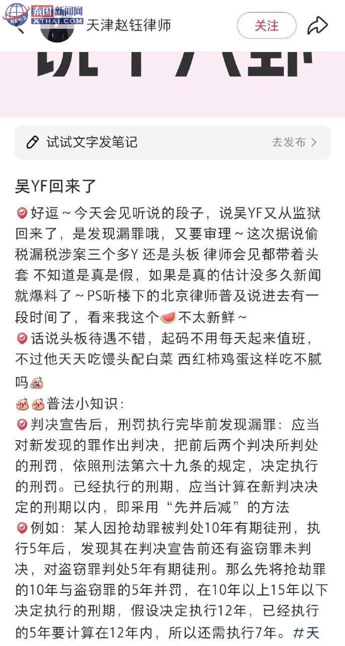 泰国新闻网XTHAI.COM报道,加拿大籍华裔明星吴亦凡的命运再掀波澜。这位昔日人气偶像因2021年被指控性侵未成年者,警方调查后确认其涉及强奸及聚众淫乱罪,一审被判13年有期徒刑,并附加驱逐出境,二审维持原判。如今,吴亦凡服刑四年后又有惊人消息传出,一位自称刑事辩护律师的网民爆料,他已被从监狱转至北京朝阳看守所,原因疑似涉及高达3亿人民币的.escape税款问题,或将面临新的审理及判决更新。据传,他在看守所内待遇优厚,被称为“头板”,日常饮食包括馒头、白菜及蕃茄炒鸡蛋,甚至无需值班。