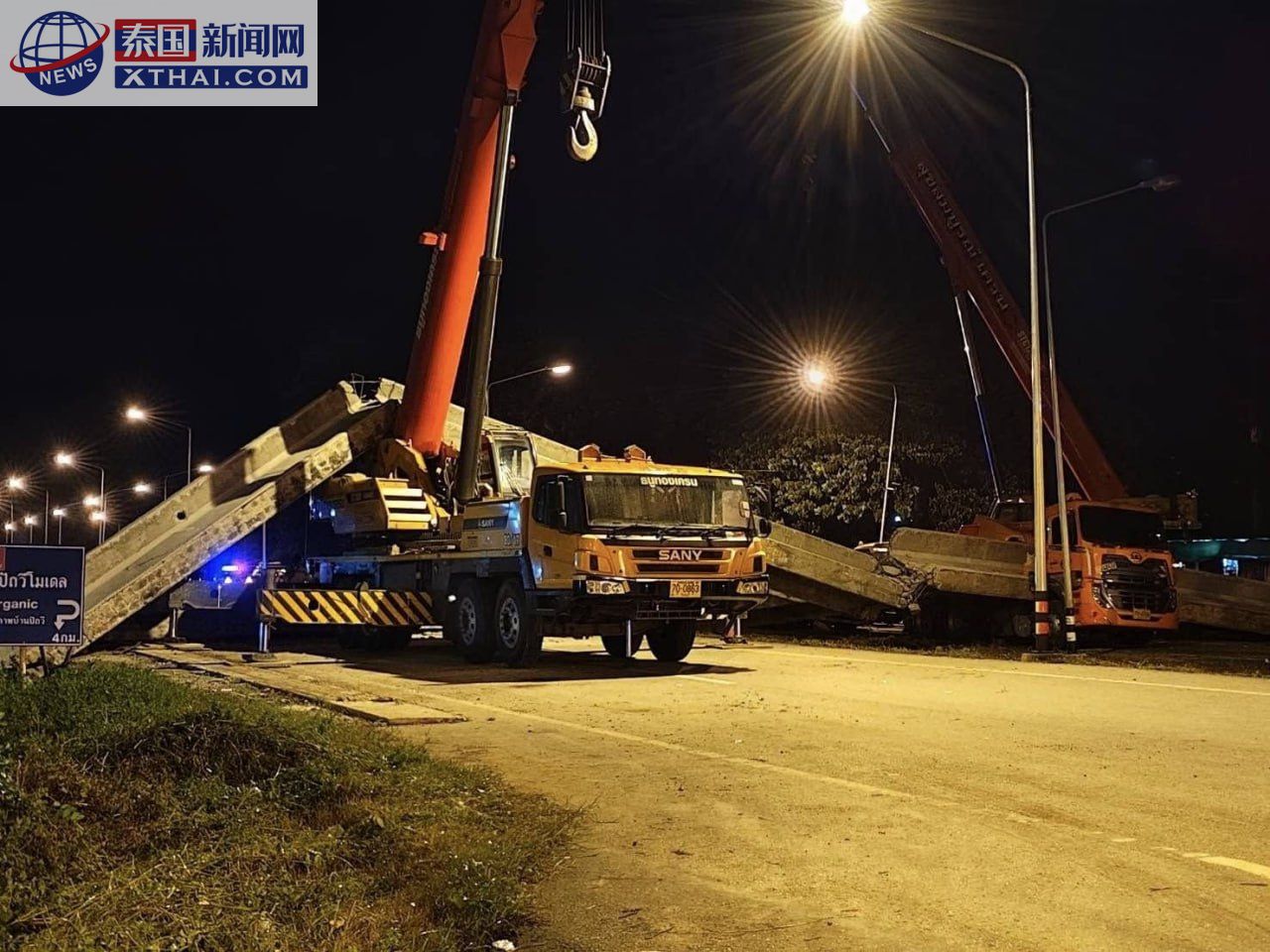 泰国新闻网XTHAI报道,泰国东部尖竹汶府一条繁忙高速公路上发生惊险一幕!8月22日晚10点20分,317号高速公路上的一座在建人行天桥突然倒塌,100多吨重的混凝土梁狠狠砸向下方,压垮了一台起重机和一辆拖车,现场一片狼藉。幸运的是,这次事故未造成人员伤亡,但财产损失相当严重。