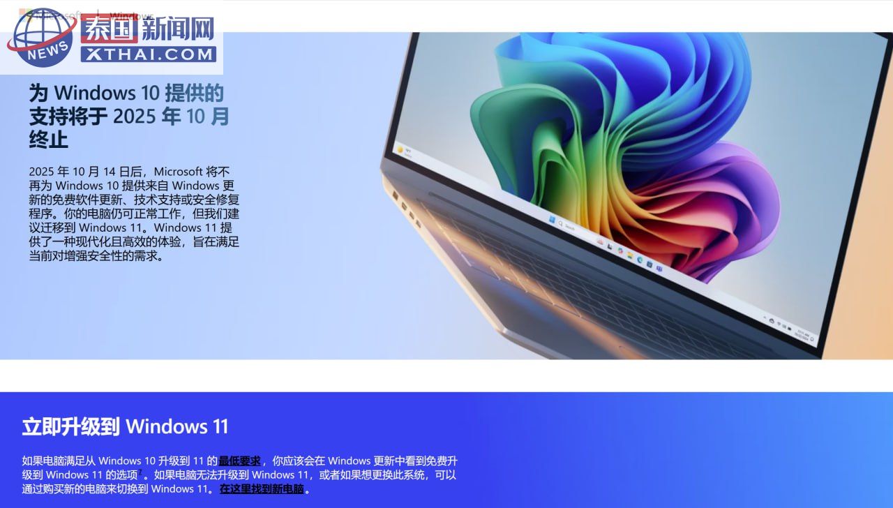 泰国新闻网XTHAI报道,微软传来一则重磅消息:Windows 10 的官方支持将于2025年10月14日正式结束!这意味着,全球仍有大量用户依赖的这一经典操作系统将不再接收安全更新和技术支持。对此,不少网友调侃:“看来是时候和老伙计说再见了,可我的电脑还想再战十年啊!”