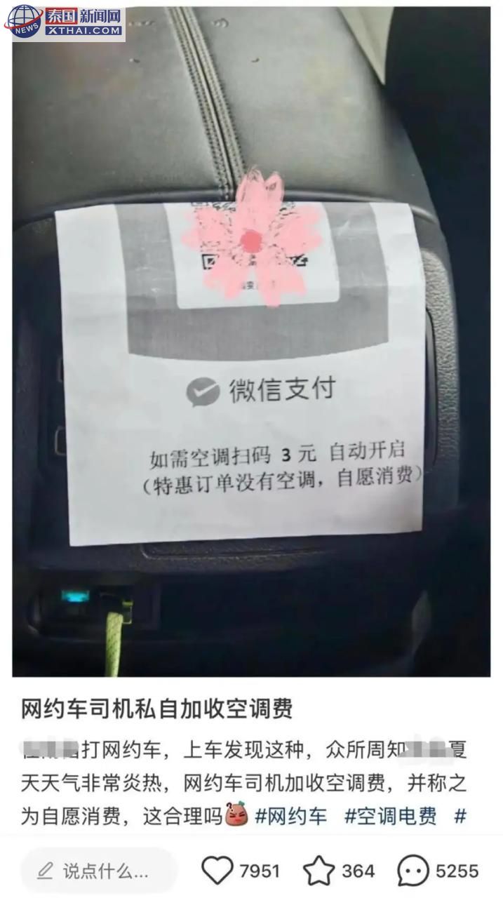 泰国新闻网XTHAI报道,夏日高温,坐网约车本该图个凉快,可最近却有乘客吐槽,在中国一些地方打到的网约车,竟然挂出了“扫码3元才开空调”的二维码!这事儿在社交平台上炸开了锅,有人觉得合理,有人直呼离谱,话题热度居高不下。