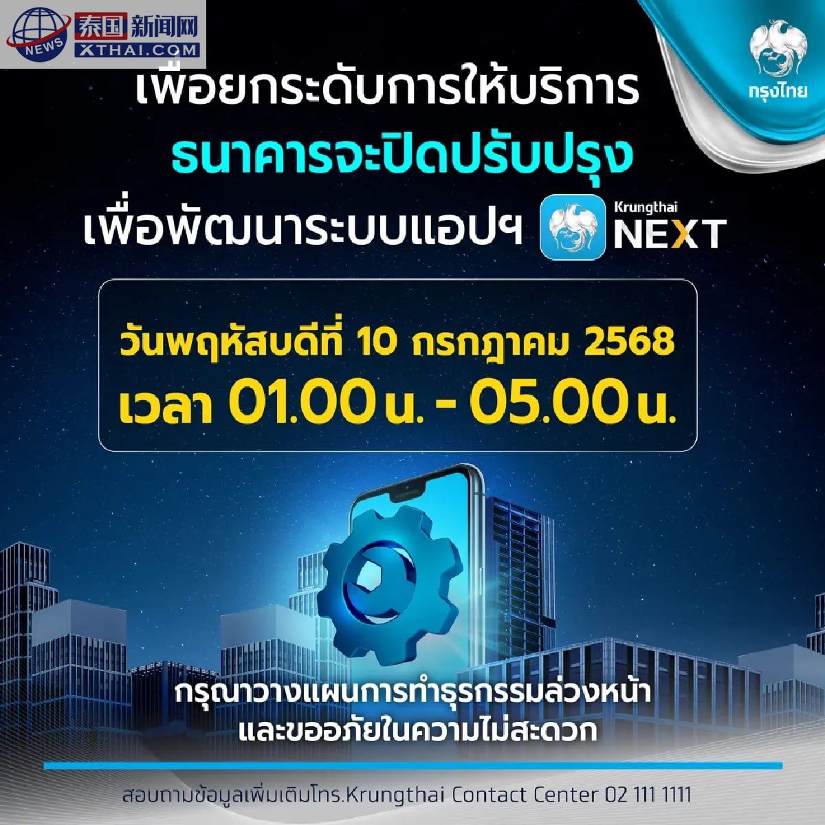 接下来,泰京银行(Krungthai)也没闲着,他们的NEXT应用系统将在2025年7月10日(星期四)凌晨1点至5点进行维护升级。这段时间内,手机银行将暂时“罢工”,所以有转账或支付需求的客户,请提前规划好时间。如果有疑问,可以拨打泰京银行联系中心02 111 1111求助。泰京银行还在“泰京关怀”公告中贴心提醒大家,不便之处请多包涵,看来他们也知道这次升级可能会让不少人有点“小情绪”。