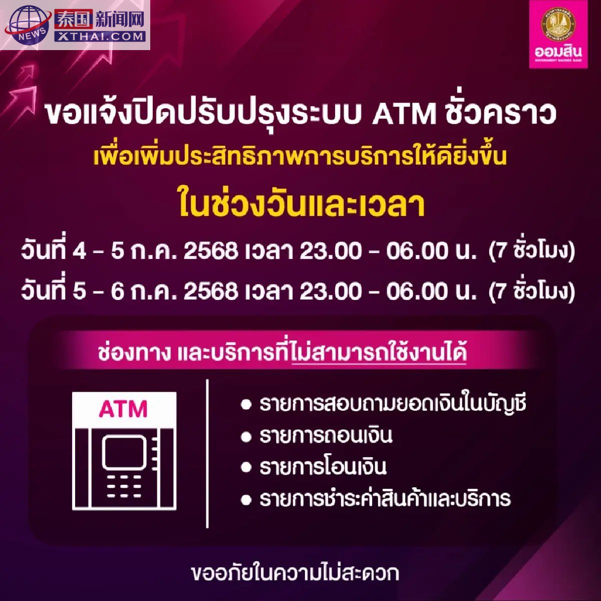 泰国新闻网XTHAI报道,泰国四大银行——政府储蓄银行(GSB)、泰京银行(Krungthai)、基亚特纳金银行(Kiatnakin)以及大城银行(Krungsri Ayudhya)近日纷纷宣布将进行系统维护,届时全国范围内的ATM机、银行应用程序及部分数字渠道将暂时无法使用。这波“银行大修”来得突然,不少民众得赶紧调整财务计划,提前备好现金,以免日常交易受影响。下面,我们就以轻松但不失严肃的口吻,带大家梳理一下各家银行的具体停机时间和影响范围,帮你快速做好准备!