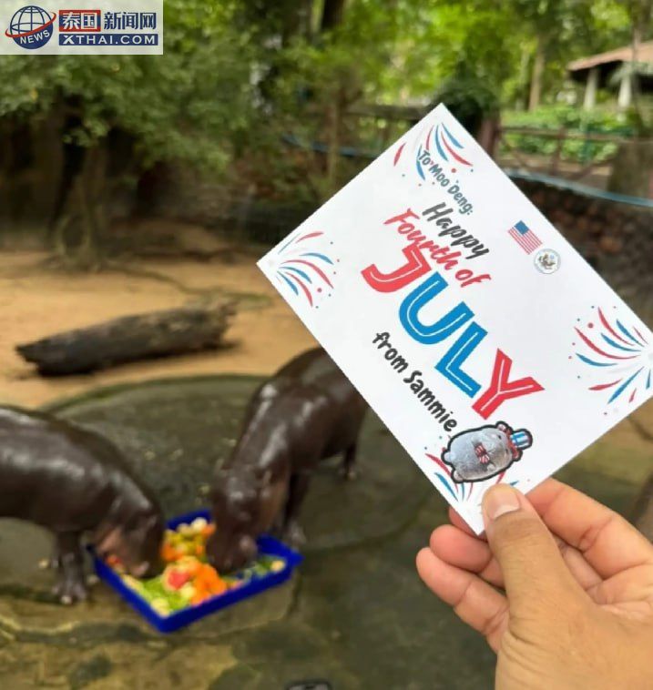 说到生日惊喜,美国驻曼谷大使馆周五送上了一份特别礼物——一只名叫“萨米”的河马毛绒玩具,作为对泰国独立日的友好祝福。这个小举动可真是暖心又有趣,象征着两国友谊的同时,也为Moo Deng的生日增添了一抹国际色彩。
