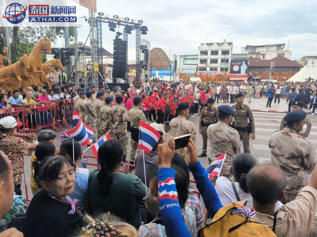 现场气氛可以用“人山人海”来形容,超过100名执法人员忙得不可开交,维持着现场秩序。许多民众身着鲜艳的红色服装,手举欢迎标牌,齐声高喊“佩通坦加油”,甚至争相送上鲜花,以表达对文化部长的热情支持。那场面,简直就像迎接一位凯旋的英雄。然而,事情总不会完全风平浪静。一些人民民主改革委员会的支持者以及其他社会联盟成员,偏偏选在Thao Suranaree纪念碑广场对面的交通隔离铁栅栏上悬挂标牌,进行象征性抗议,表达对佩通坦参与活动的不满。
