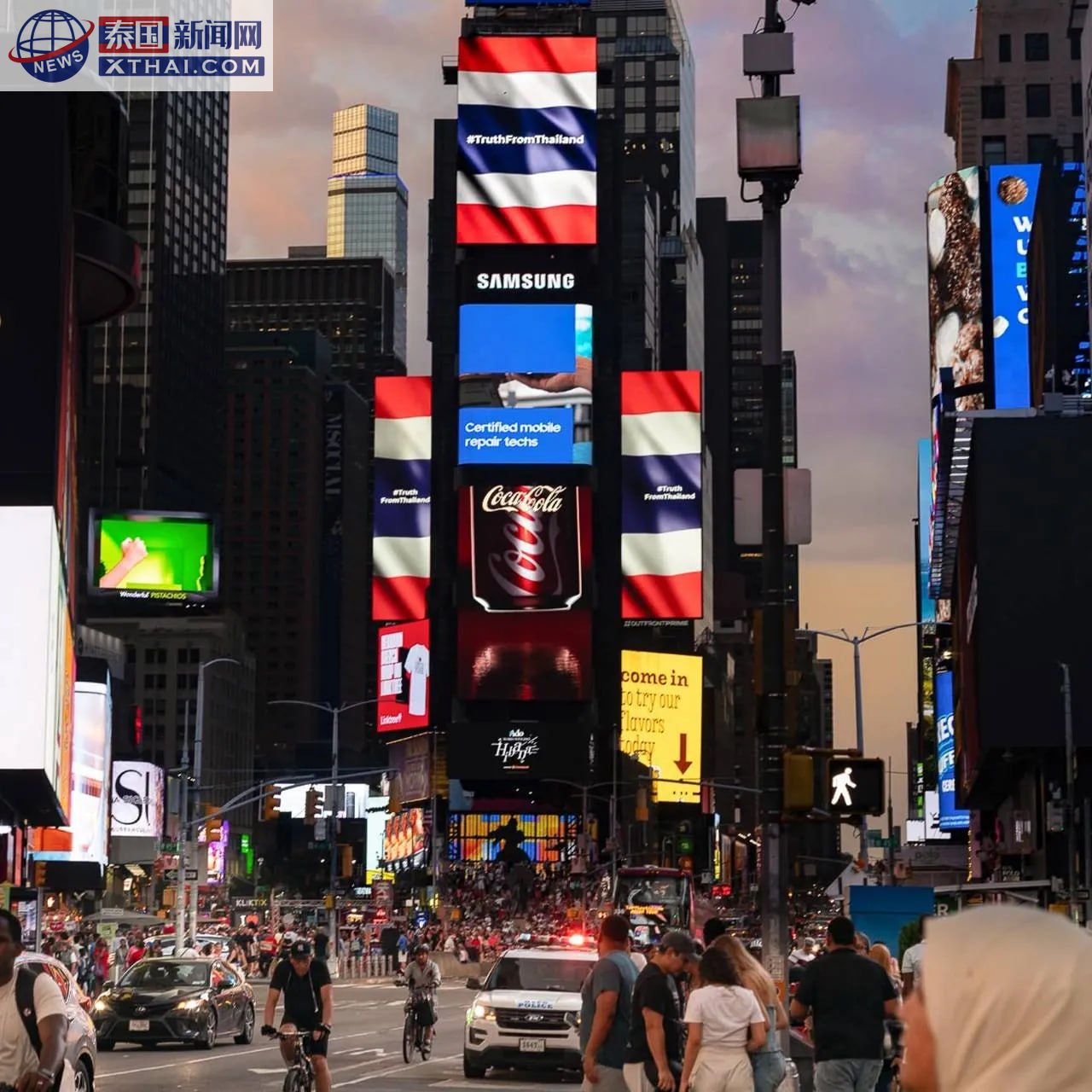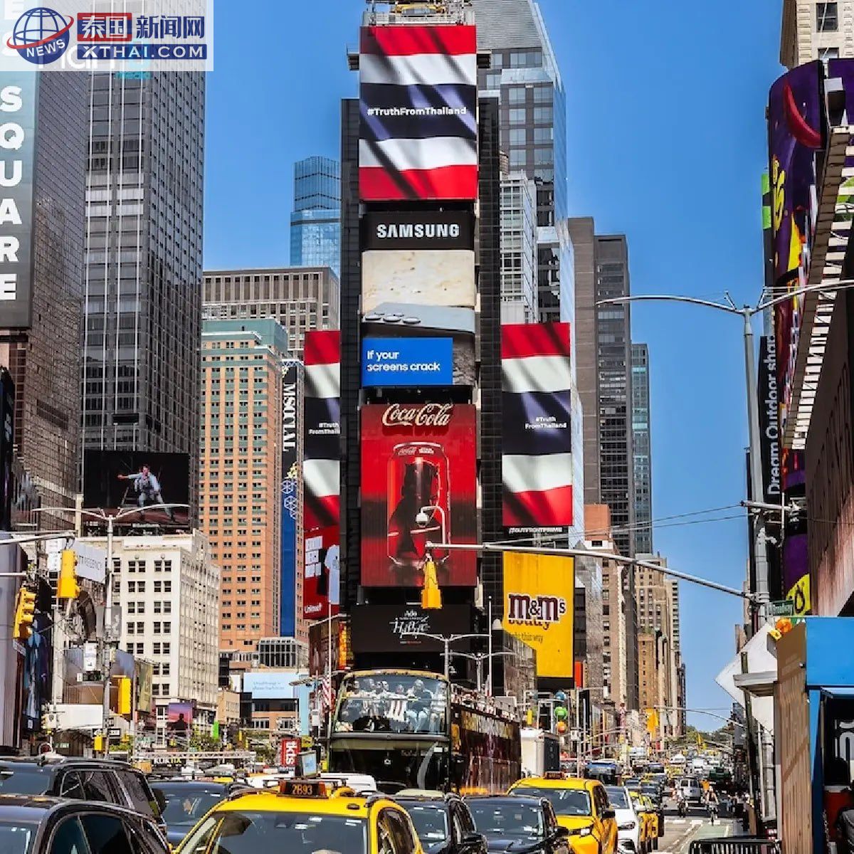 泰国新闻网XTHAI报道,7月30日傍晚,美国纽约时代广场的繁华街头被一抹鲜亮的泰国国旗“刷屏”!三座大楼的巨型广告屏幕同步高挂泰国国旗,屏幕上还滚动播放着“向为国捐躯的泰国军人致敬”的字样。这一幕,不仅震撼路人,更向全世界传递出泰国的坚定声音。这背后的推手,正是泰国户外广告巨头Plan B Media,他们以创意和行动为国家发声,力挺边境官兵,反击柬埔寨在国际舆论场上的攻势。