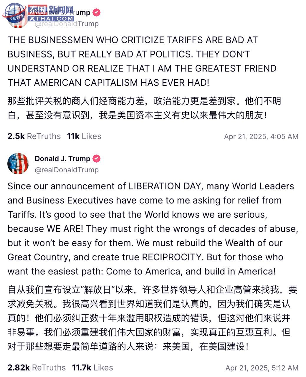 泰国新闻网XTHAI.COM报道,现任美国总统特朗普再次强势发声,针对关税政策发表激烈言论,引发全球关注。作为第二次当选的总统,特朗普毫不掩饰对批评关税的商人的不屑,称他们“生意失败,政治无知”,并自诩为“美国资本主义历史上最伟大的朋友”。他强调,自“解放日”宣布以来,多国领导人和企业高层频频求情,希望减免关税,但特朗普态度坚决,表示美国将重建财富,追求真正的对等互惠。他更直言,唯一捷径就是“来美国建厂”。这一强硬立场无疑将对全球经济格局产生深远影响。