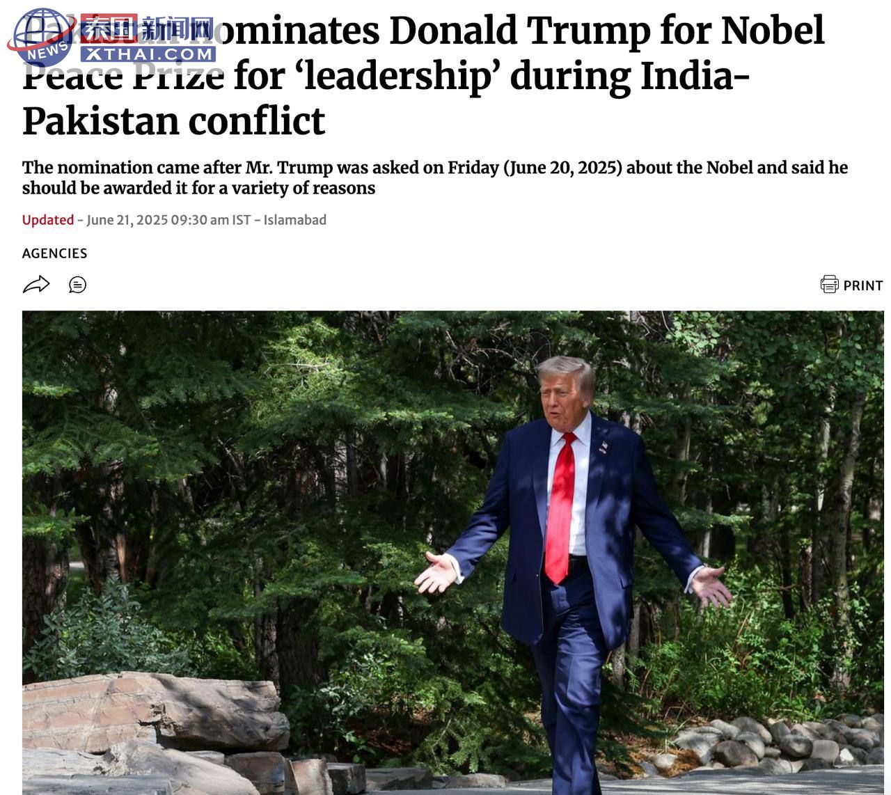 泰国新闻网XTHAI报道,现任美国总统唐纳德·特朗普因在南亚地区的和平努力而获得意外的国际赞誉!巴基斯坦政府正式提议将2026年诺贝尔和平奖授予特朗普,称其以卓越的战略眼光和政治家风范,成功阻止了与印度在克什米尔地区的潜在大规模冲突,避免了一场可能引发核危机的战争。巴基斯坦外交部特别指出,特朗普主动介入调解,并在关键时刻平息了紧张局势,为地区稳定立下汗马功劳。