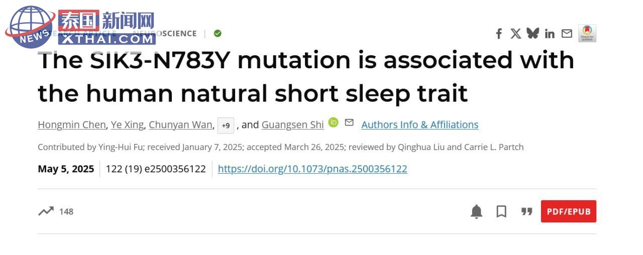 <img class="alignnone size-full" src="https://i.xthai.com/f0qMO7nXP_jBWqmovfEOU94FPLsuR9f_UoIgqd8OE78/wm:0.7:nowe:::0.25/plain/s3://xthai/1746680307.jpg" /> 泰国新闻网XTHAI报道,一项突破性研究揭示了人类睡眠需求的遗传奥秘。科学家发现,SIK3基因的罕见突变可能赋予少数人“自然短睡”的特殊能力,这些人每晚仅需三至六小时的睡眠,却能保持充沛精力和健康状态,无任何负面影响。研究还指出,该基因突变通过加速大脑在睡眠中的恢复过程,显著减少睡眠需求。这一发现不仅为睡眠机制提供了新视角,也为未来治疗睡眠障碍开辟了新路径,令人振奋。 #基因研究 #短睡基因 #睡眠障碍 #SIK3基因
