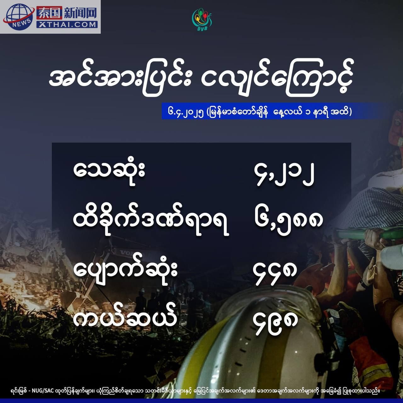 <img class="alignnone size-full" src="https://i.xthai.com/Si2RkTfdMR-Z_E-mRhmxeuY4gCrwGGX4hgcn22f8E2M/wm:0.7:nowe:::0.25/plain/s3://xthai/1743928447.jpg" /> 泰国新闻网XTHAI.COM报道:缅甸近日遭遇强震重创,截至今日下午1时,官方统计死亡人数已攀升至4212人!DVB数据团队最新报告显示,仍有448人下落不明,救援人员已成功从废墟中救出498名幸存者。此次地震震中地区建筑大面积倒塌,多国救援队携带生命探测仪与搜救犬连夜驰援,灾民安置点已搭建临时医疗帐篷。危机持续牵动国际社会,联合国人道主义事务协调厅正协调空中救援物资投送。 #缅甸地震,#伤亡数据更新,#国际救援行动,#生命奇迹,#灾后重建挑战