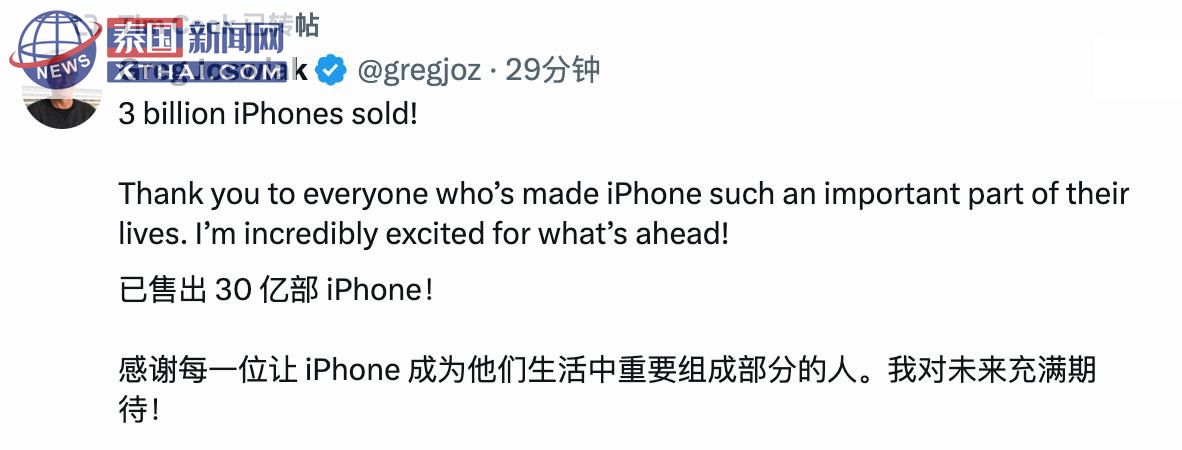 泰国新闻网XTHAI报道,苹果公司近日公布了2025财年第三季度财报,成绩单相当亮眼,营收、每股收益以及iPhone业务收入等关键指标均超出分析师预期。而在这一波好消息中,最引人注目的莫过于一个惊人的历史性里程碑——自2007年首款iPhone问世以来,苹果已累计出货超过30亿部iPhone!这个数字,简直让人瞠目结舌,堪称科技界的“销量神话”。