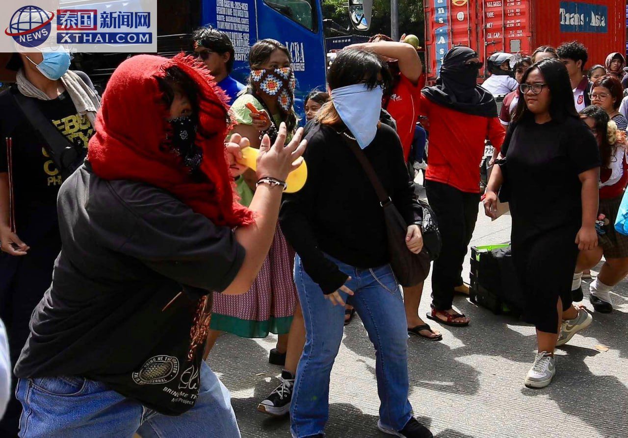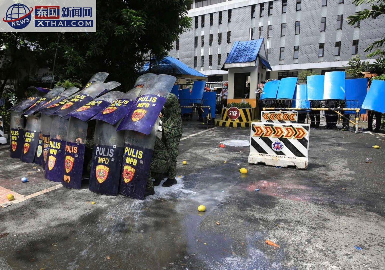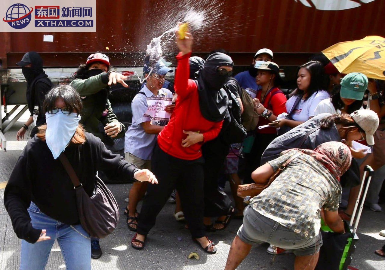 泰国新闻网XTHAI报道,9月4日星期四,菲律宾马尼拉公共工程与公路部外上演了一出“蔬菜大战”。一群愤怒的抗议者聚集在此,对该机构涉嫌违规行为表达强烈不满。他们不仅高声抗议,还用掺杂了恶臭水的烂蔬菜向现场维持秩序的警察投掷,场面一度混乱。