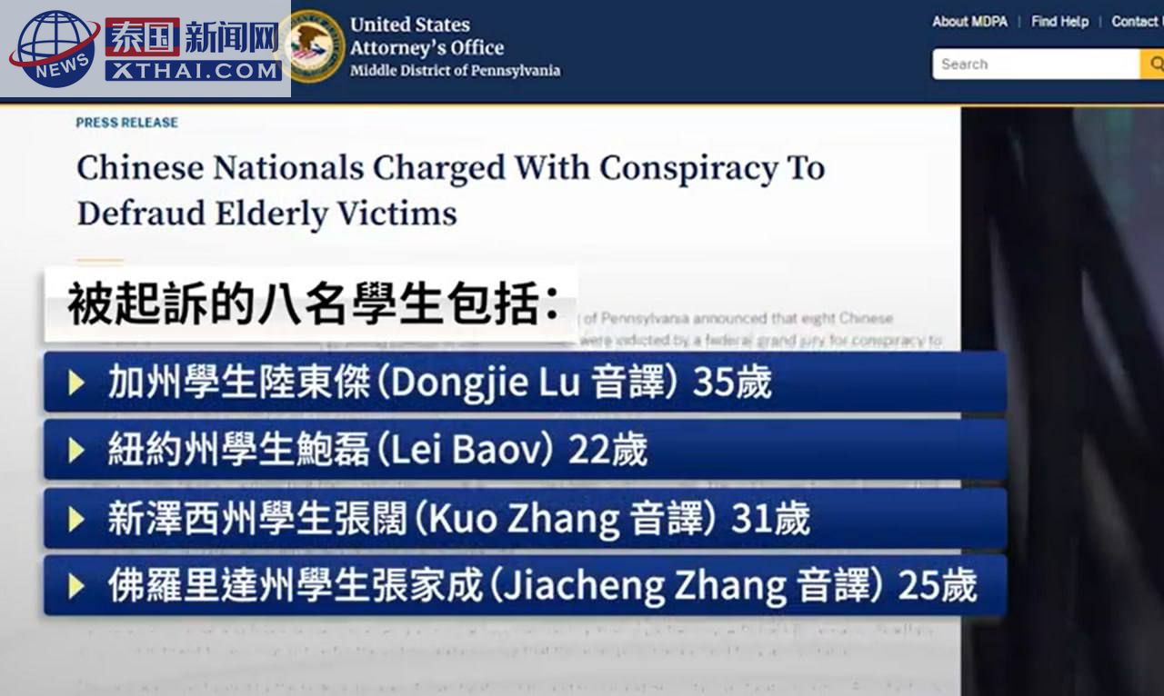 泰国新闻网XTHAI报道,最近美国宾州中区联邦检察官办公室扔出一颗重磅炸弹:八名持F-1学生签证的中国公民被指控涉嫌针对美国老年人实施跨州电信诈骗,诈骗金额竟然高达1000万美元!这可不是小数目,简直是把“留学生”这个标签玩出了新花样。