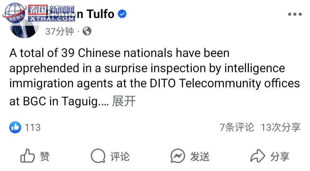 泰国新闻网XTHAI报道,菲律宾移民局近日在塔吉格市BGC对DITO电信公司总部展开突袭行动,现场拘留了39名无法提供合法工作签证的中国籍员工,引发社会广泛关注。据悉,此次行动由移民局情报处长福图纳托·马纳汉亲自带队,起因于社交媒体曝光的线索,称该公司可能雇佣多达400名无合法签证的中国公民。DITO作为菲律宾第三大电信运营商,长期以来因国家安全疑虑及外国雇员问题备受争议。官方表示,将深入调查这些员工的入境方式及公司是否存在违法行为,若属实,相关人员将被驱逐出境,DITO或面临行政乃至刑事追责。这次突袭被认为是菲律宾政府加强对战略领域外籍人员监管的重要信号,特别是在当前中菲关系紧张的背景下,电信等敏感行业的合规性问题已成为国家安全议题的焦点。此外,有分析指出,此类事件可能进一步加剧公众对外国资本影响的担忧情绪。