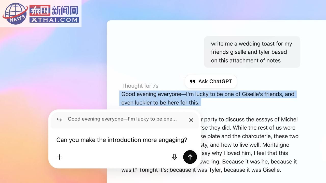 泰国新闻网XTHAI报道,OpenAI 再掀科技风暴!这家人工智能领域的“大咖”正式发布了全新的GPT-5模型,号称是目前最聪明、最迅速的AI“大脑”,而且已经向所有用户敞开大门!这可不是简单的升级,而是直接把AI的智商和速度拉到了一个新高度,简直让人直呼“未来已来”!